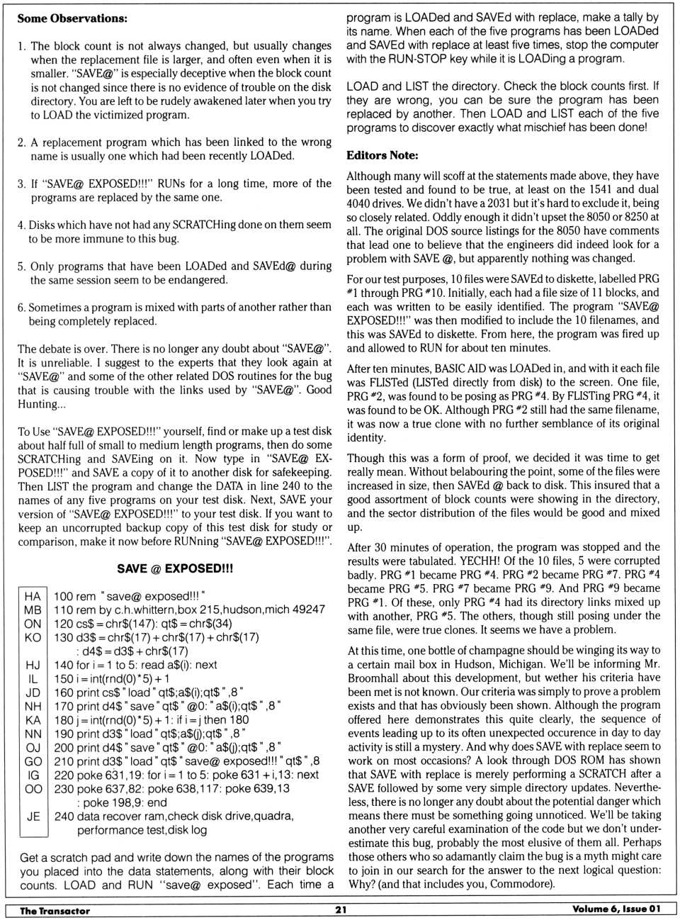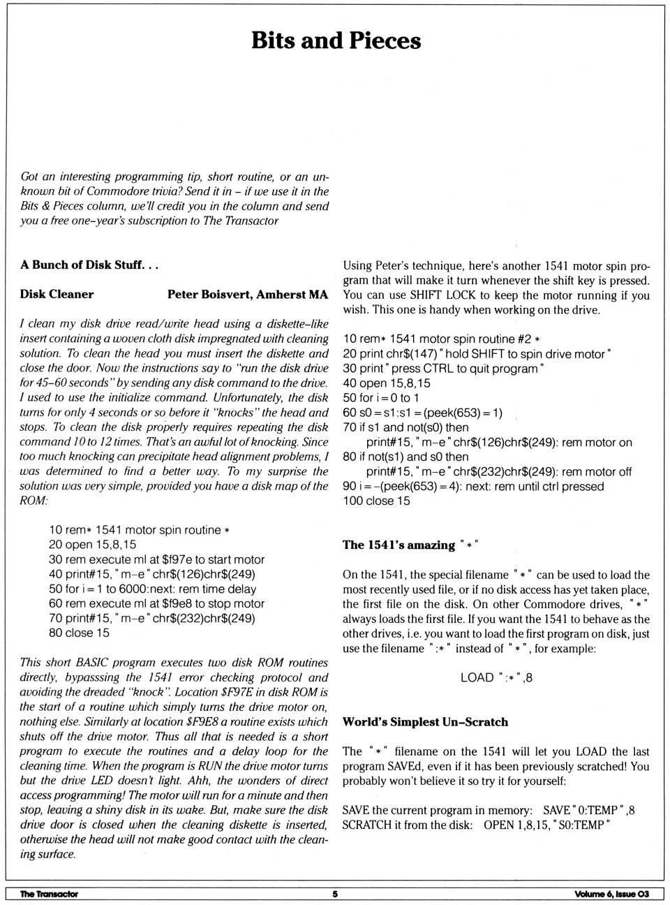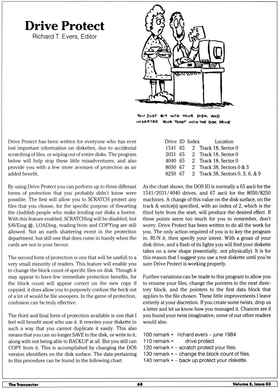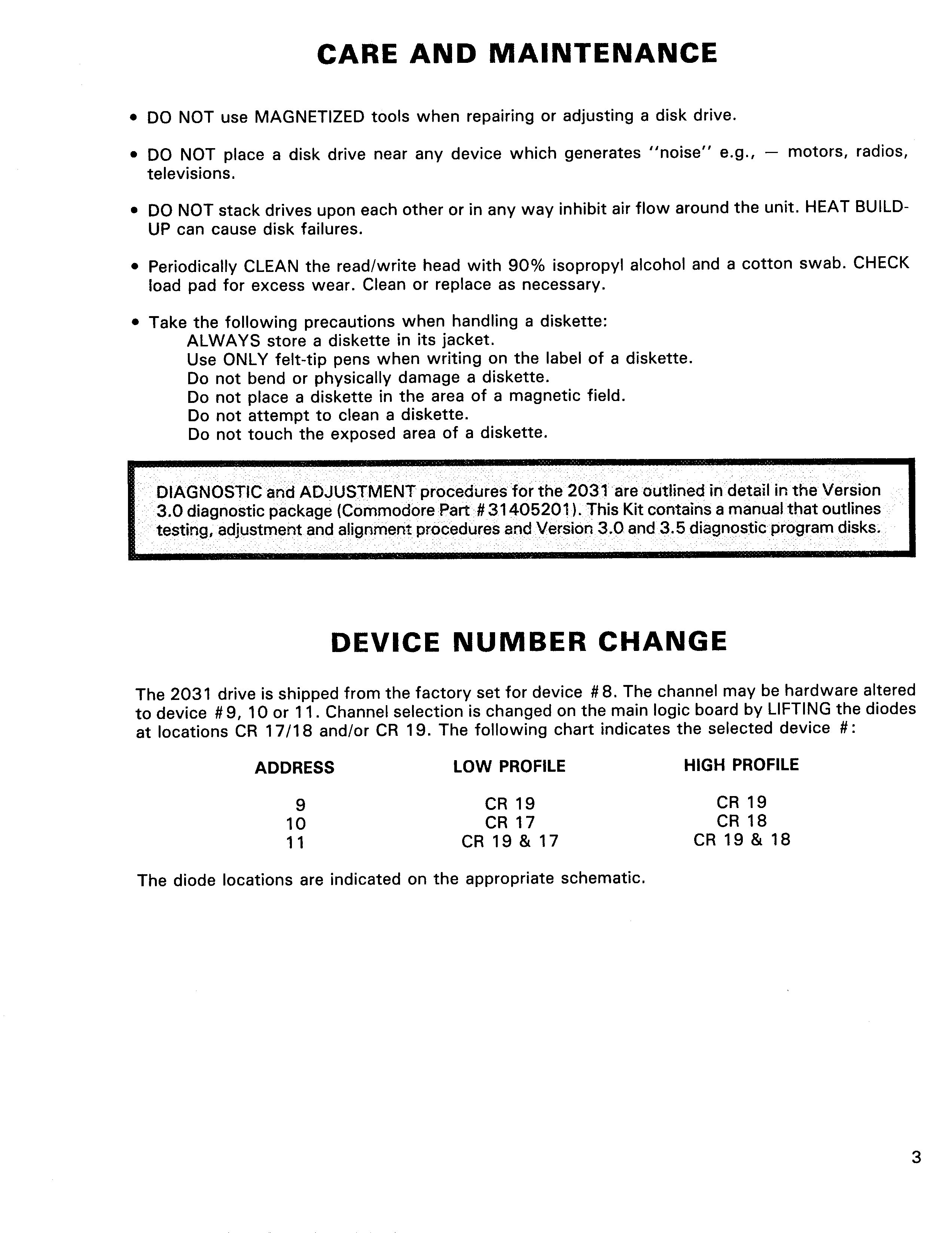 test/demo disk. In this version, the device number of the disk drive