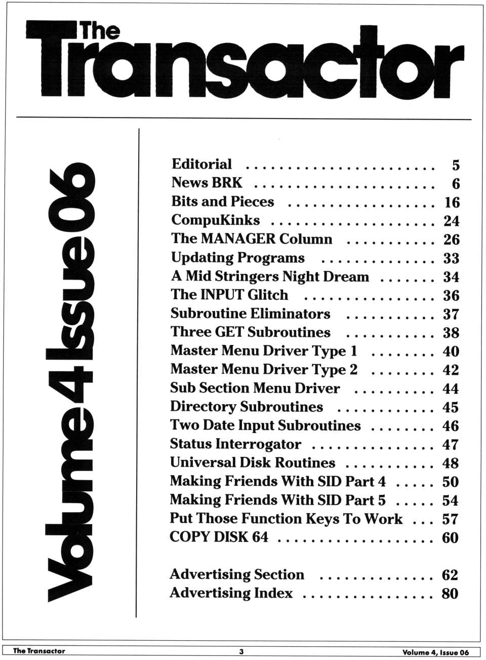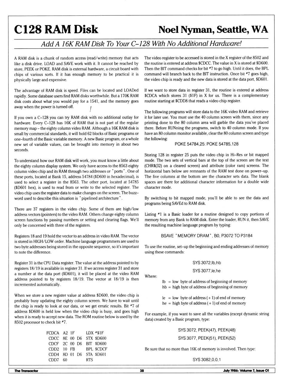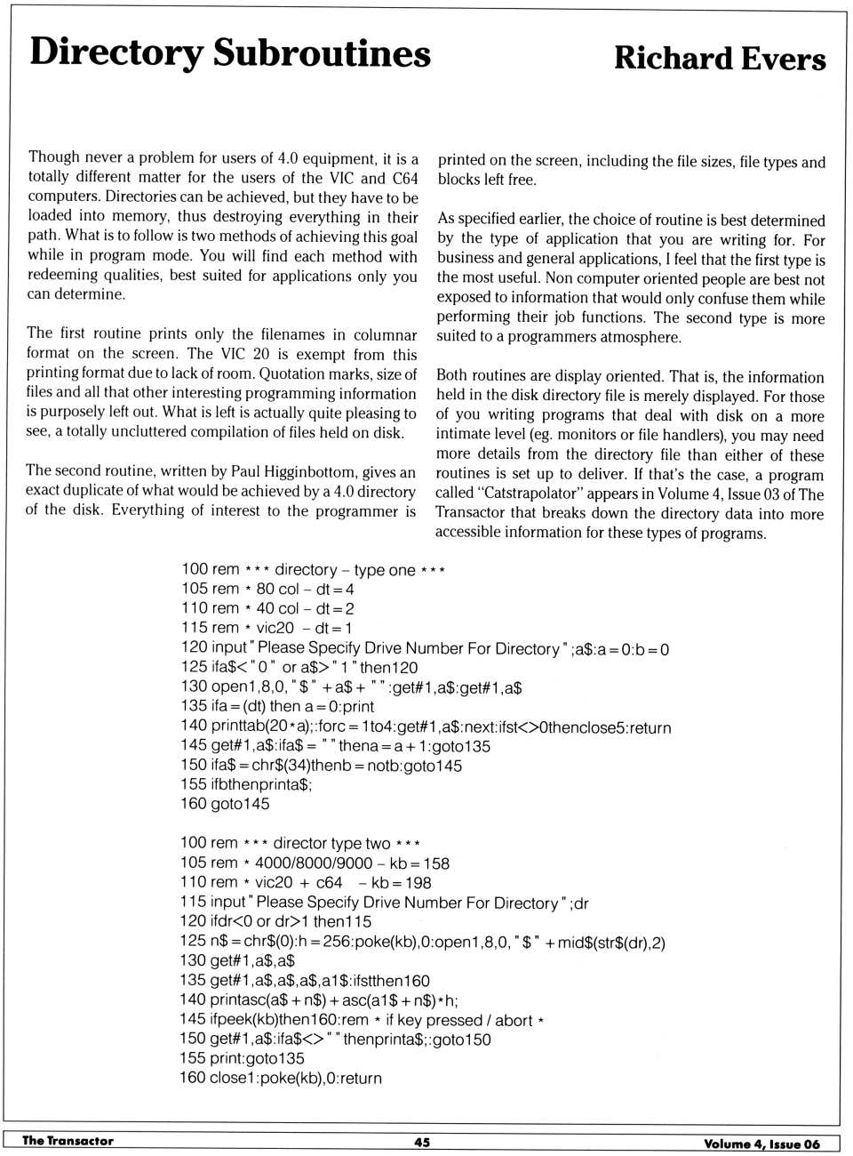 test/demo disk. In this version, the device number of the disk drive