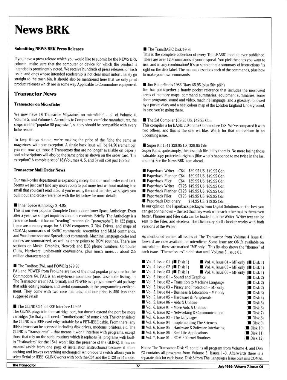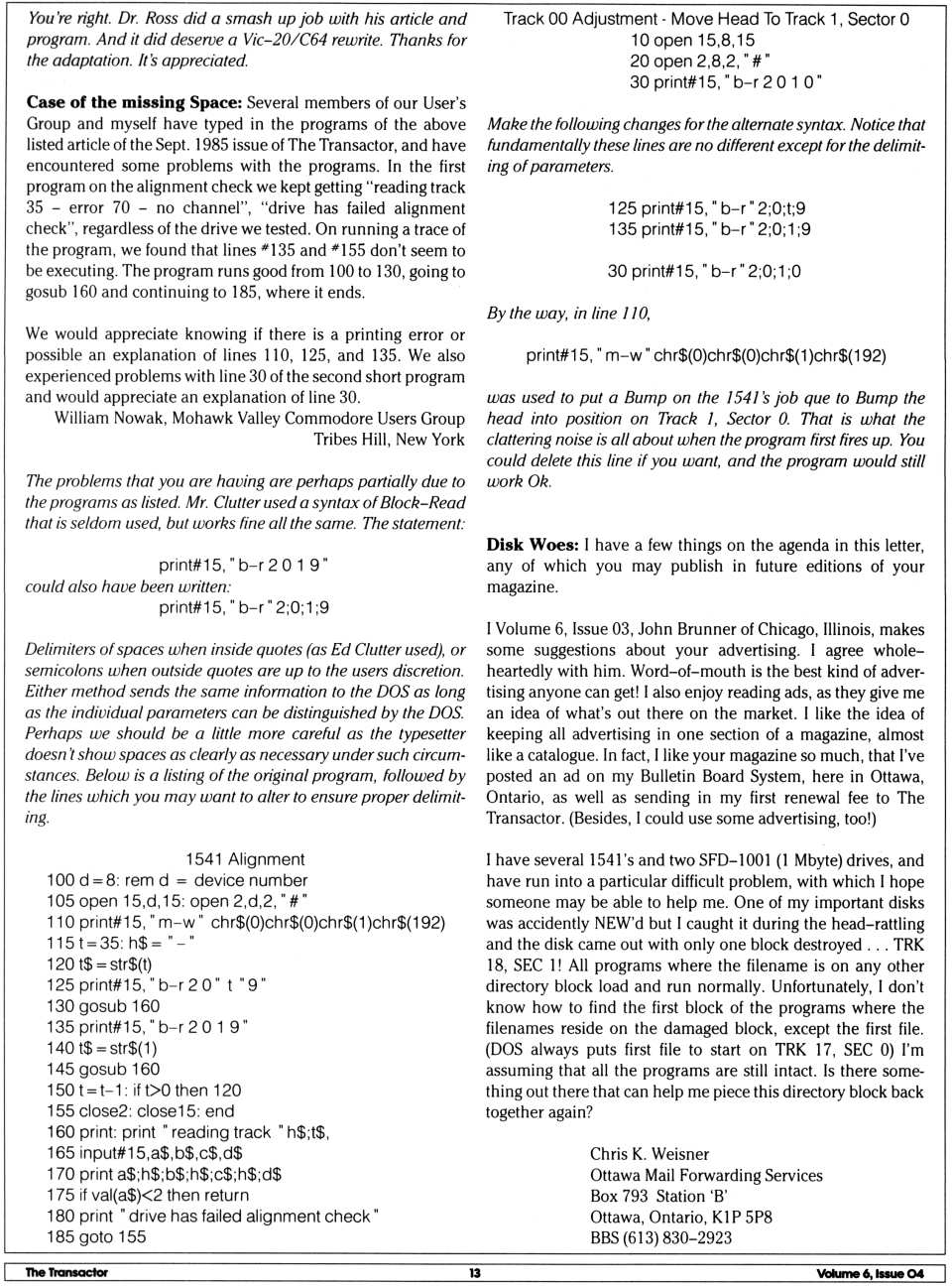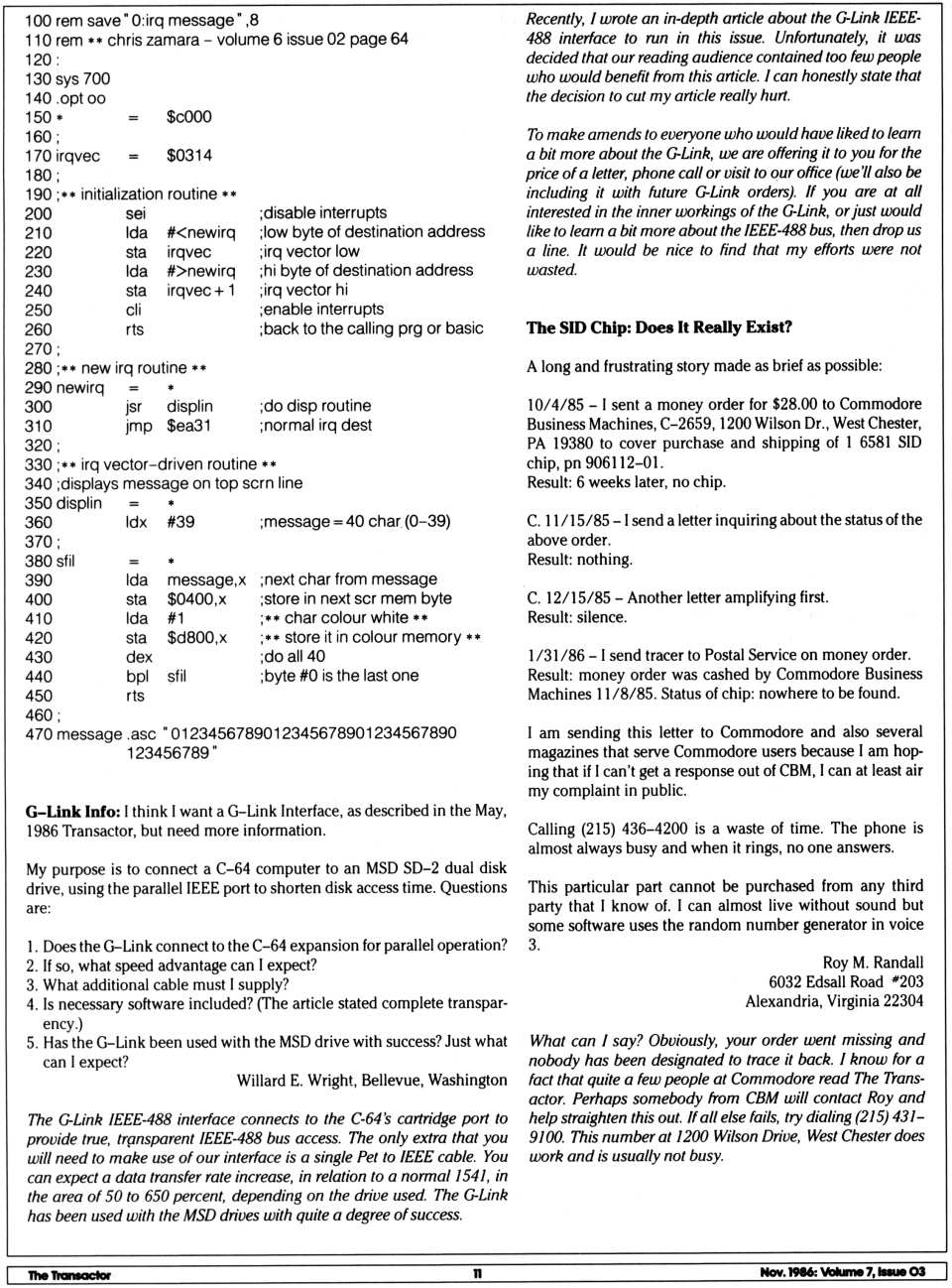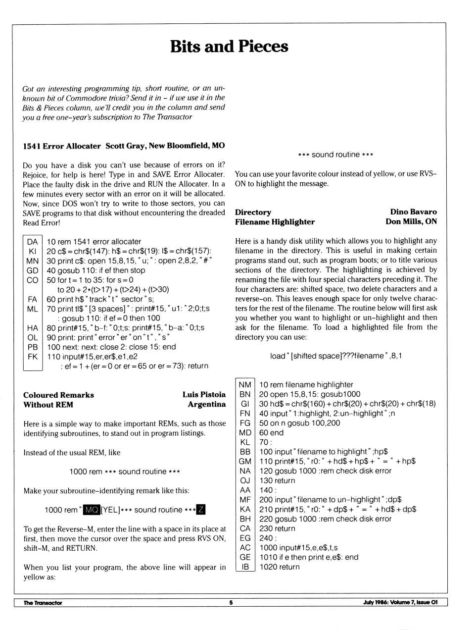 test/demo disk. In this version, the device number of the disk drive