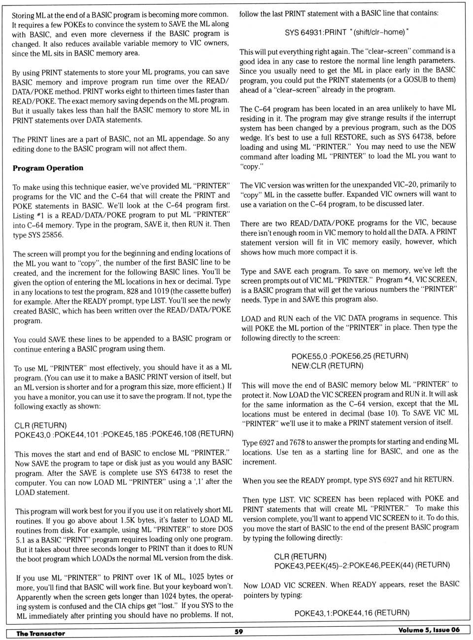 - Prints all BASIC variables on the screen. Works in all memory
