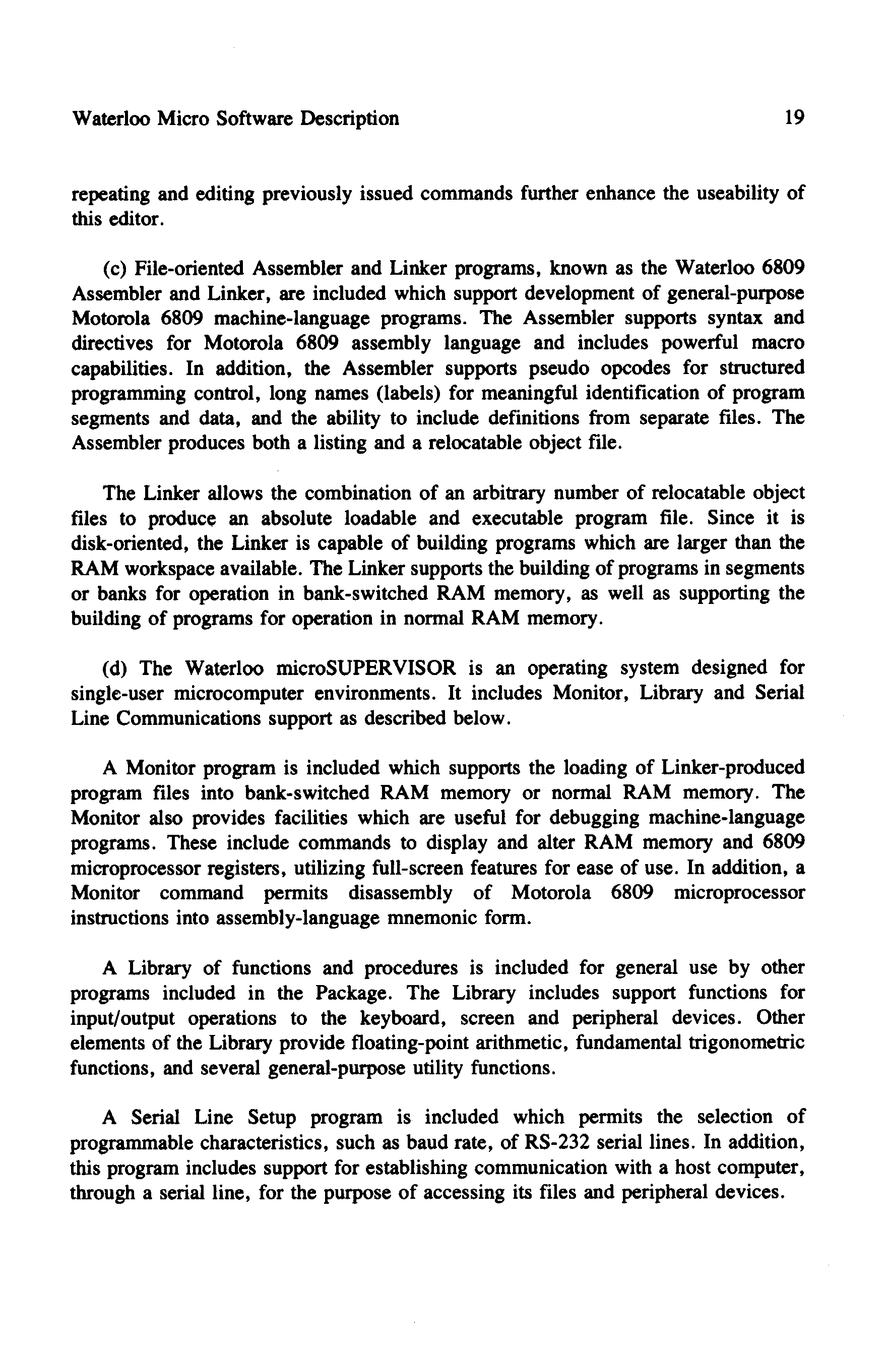 - Tiny relocatable machine language monitor.