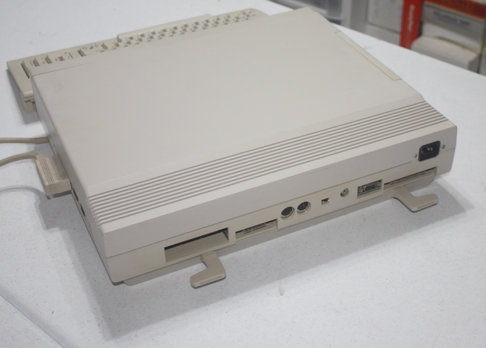 Next up was the Commodore 128D/81, which was originally taken down just for retr0brighting. The entire lower half of the case was a pastel burnt orange, as were several keys. You can still see that those keys could use some more work, but the rest of the case came out beautifully.