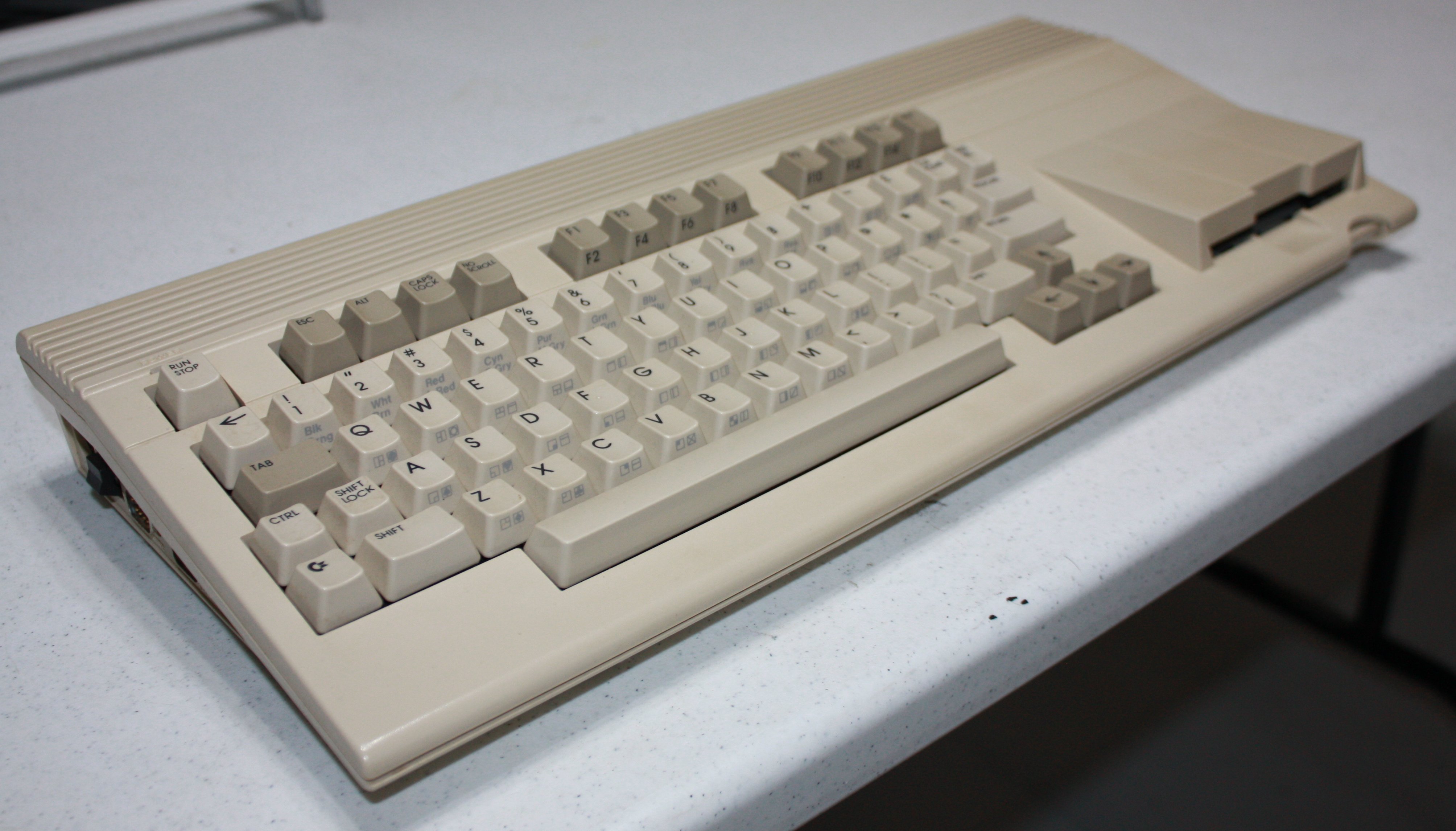 had both 64 and 65 mode. built in 1581 style drive. Native mode had BASIC 10.0, dual SID, 128kB and 3.54 MHz 6502 derivative CPU with extra addressing modes. Also IEC, RGBI, C64 video port, 2 joystick ports, reset switch, and C64 cart. port. Could access >64kB directly.