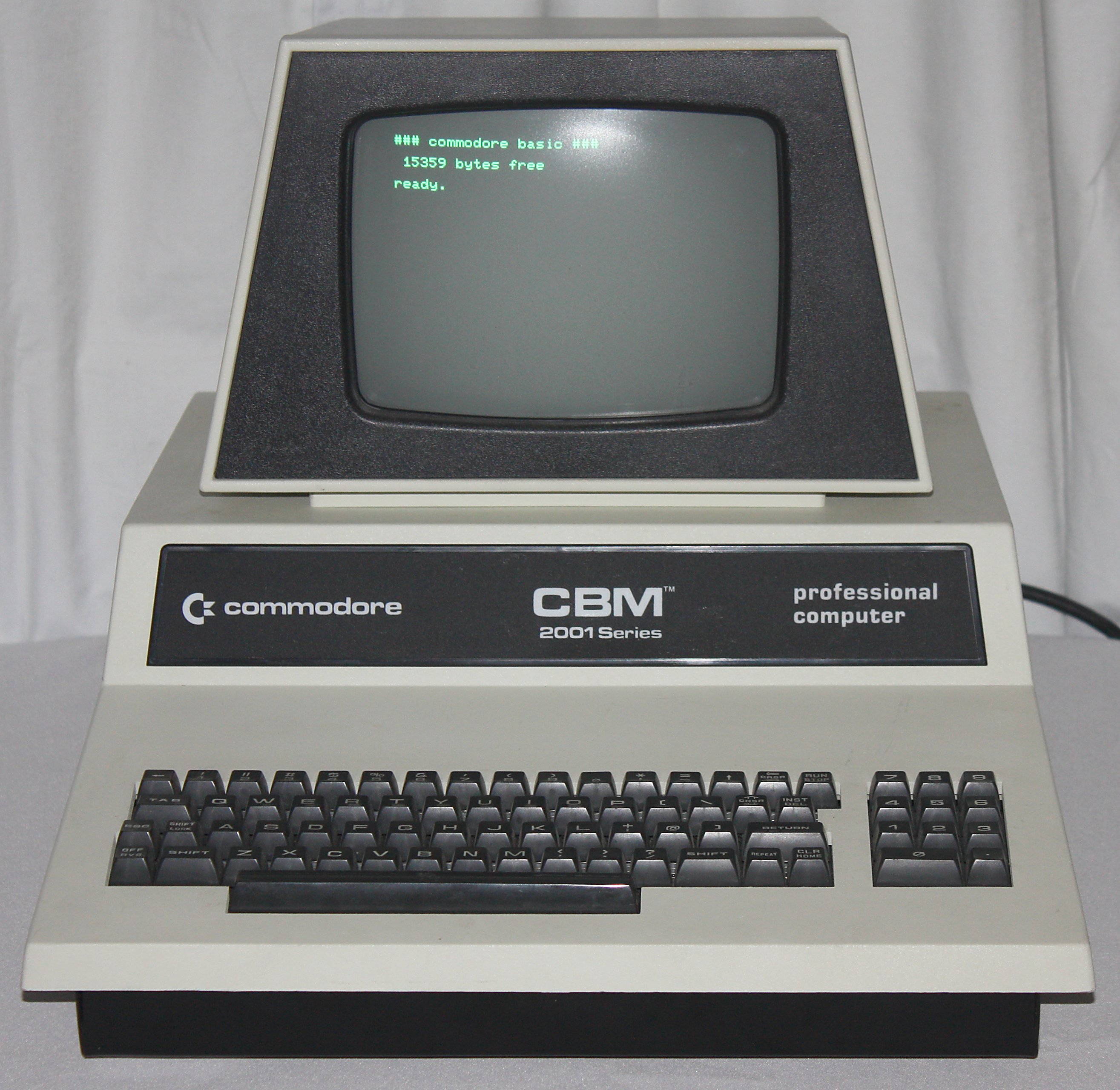 Renamed to CBM 20XX, XX = RAM, when Philips forbid PET use. Most CBM renamed units powered up in lowercase and had a different keyboard config, while the PET machines booted in uppercase. B and N notation alternately put after RAM amount in name (PET 2001B-32 = PET 2001-32B) Black (B) or Blue (N) Trim, 9" (9) or 12" (2) screen, Built-In Cassette with Chiclet Keys (C), Business Style Keyboard with No Graphics on Keys (K), or Home Computer with Number Keys and Graphics on Keys (H), Green/White screen (G) or Black/White screen (W)