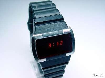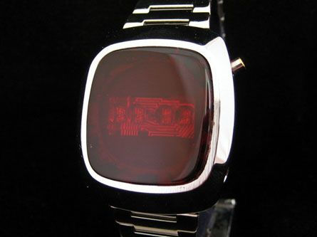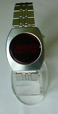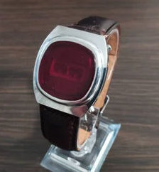 LED,Large red rounded face, silver trim, metal band