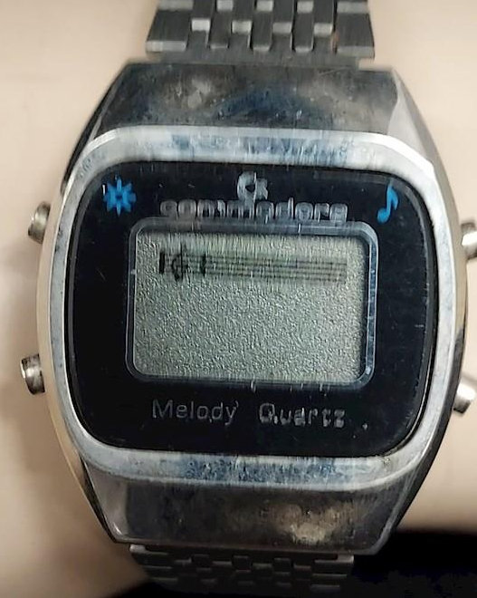 Wom LCD blk face,silv trim&band,mus.bar,4butt,MelodyQuartz