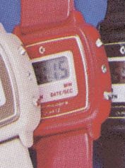Wom LCD sq red face&strap, wht trim,C= Quartz,5fun,+date