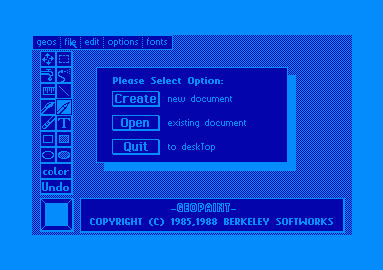 geoWrite's companion application is called geoPaint. Capable of exploiting all of the user's artistic ability, geoPaint is the workbench for your own GEOS art.