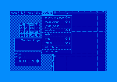 GEOS is probably best known for it's ability to really produce in the area of desktop publishing. Numerous newsletters and magazine are, to this day, produced in GEOS thanks in large part to geoPublish. Designing pages, cutting and pasting clipart and resizable articles are all a cinch with this amazing application. Numerous layouts come ready with the application to fit most printer resolutions. A handy toolbox is always available in whatever design mode you are operating in.