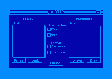 8/11/01 geoBEAP has been rewritten! In addition to D64s and .BEP archives, geoBEAP now supports Convert (.cvt) files, .D71 files, .D81 files, EMUTIL Single Compressed disk images, EMUTIL multi-file Compressed disk images, ZipCode 4-packs, LYNX (all versions) file archives, and ARK file archives.