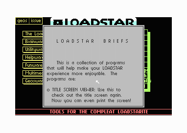 issue of the LoadStar disk magazine from the comfort of GEOS.